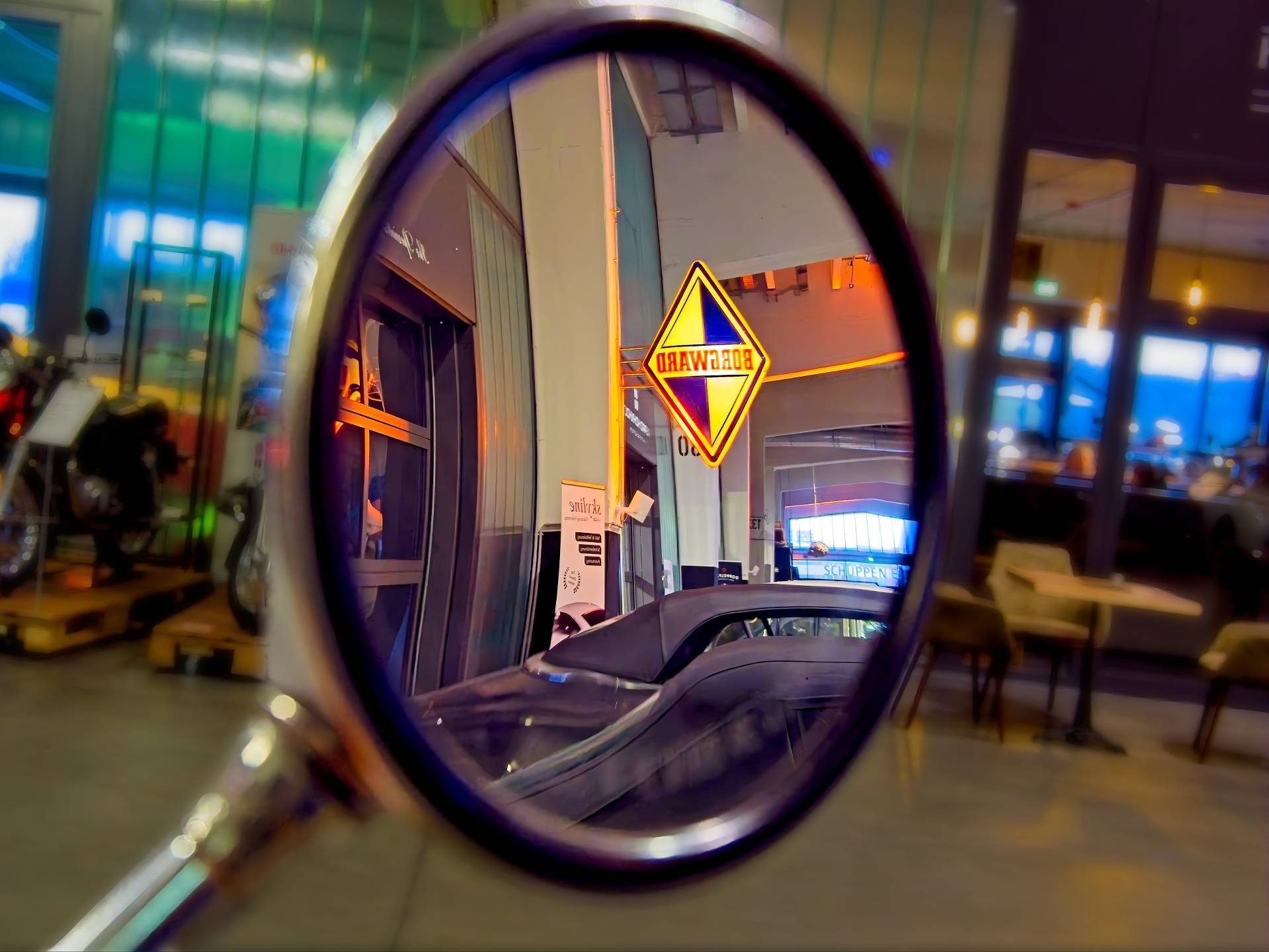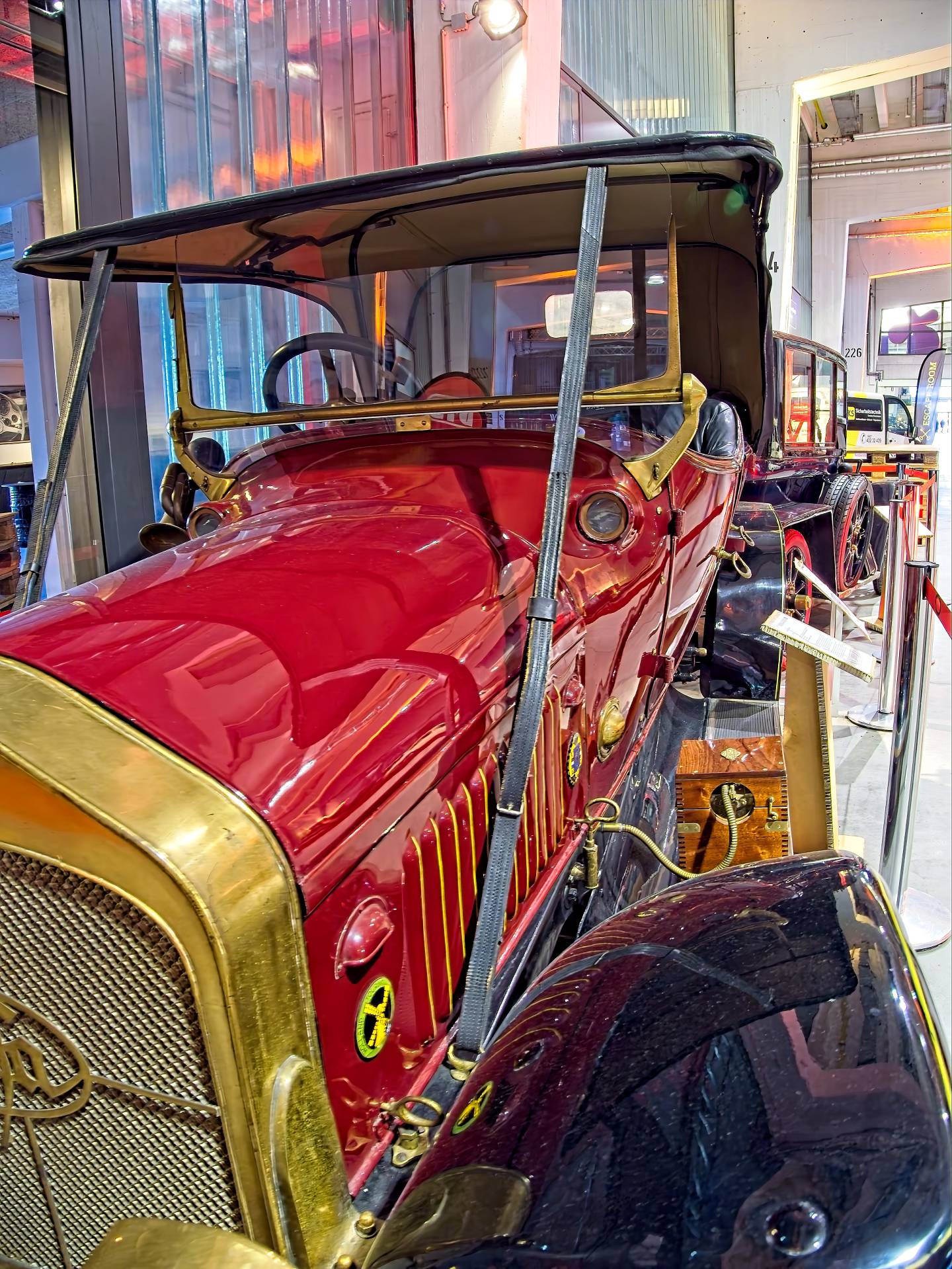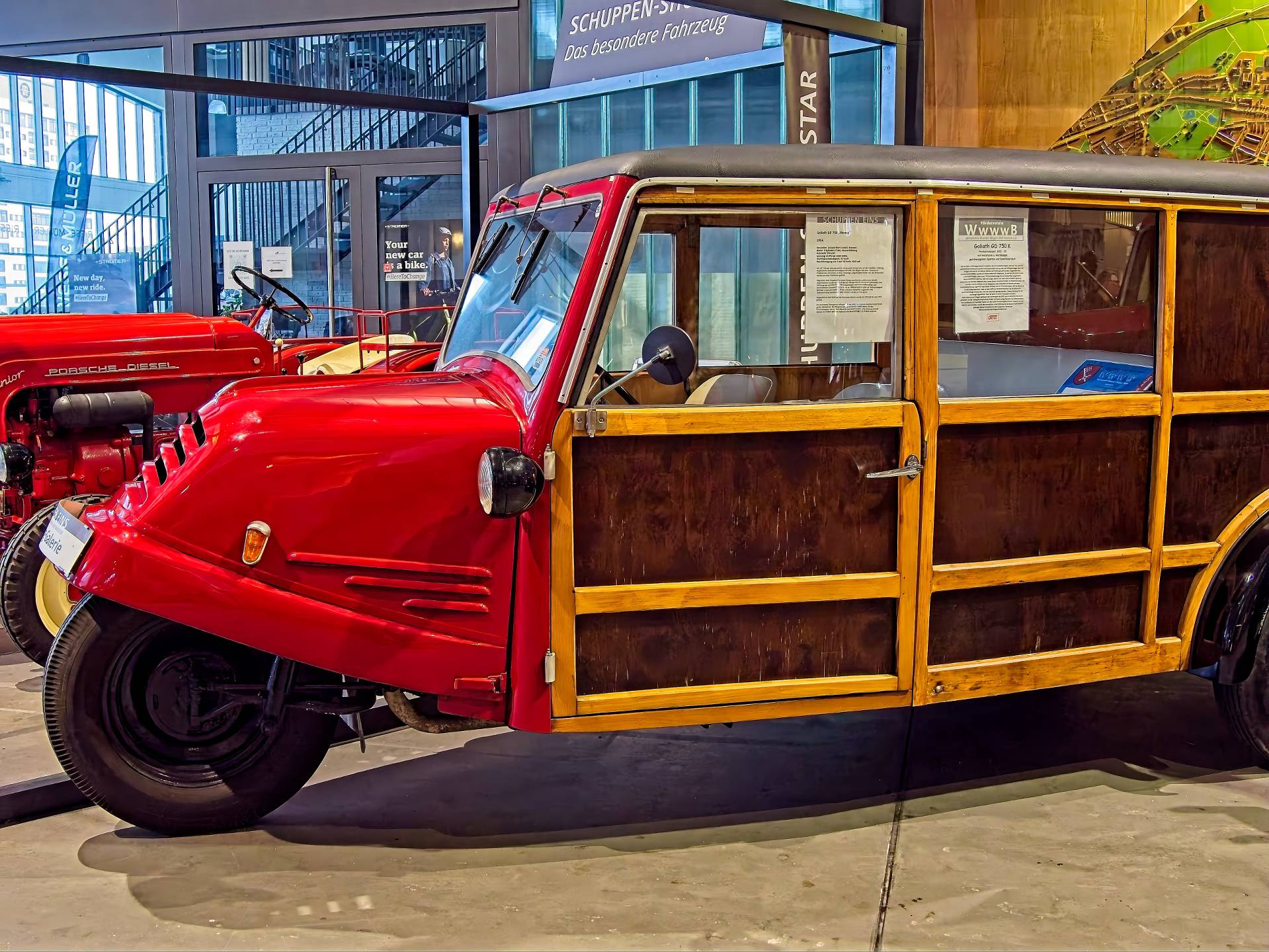 Also particularly interesting is the view into the glass-fronted workshops, where classic cars are currently being restored.
